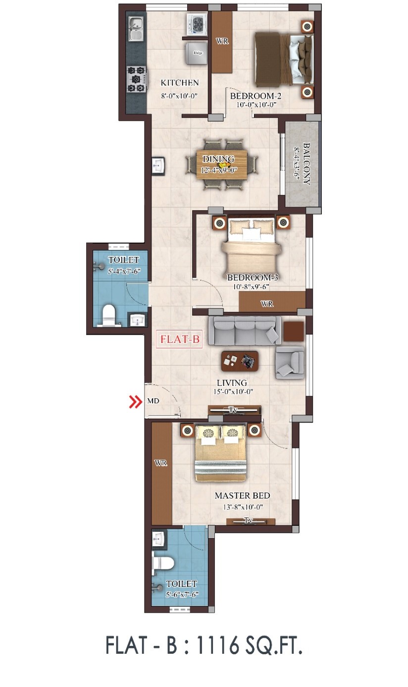 ๐ 3 BHK Configuration